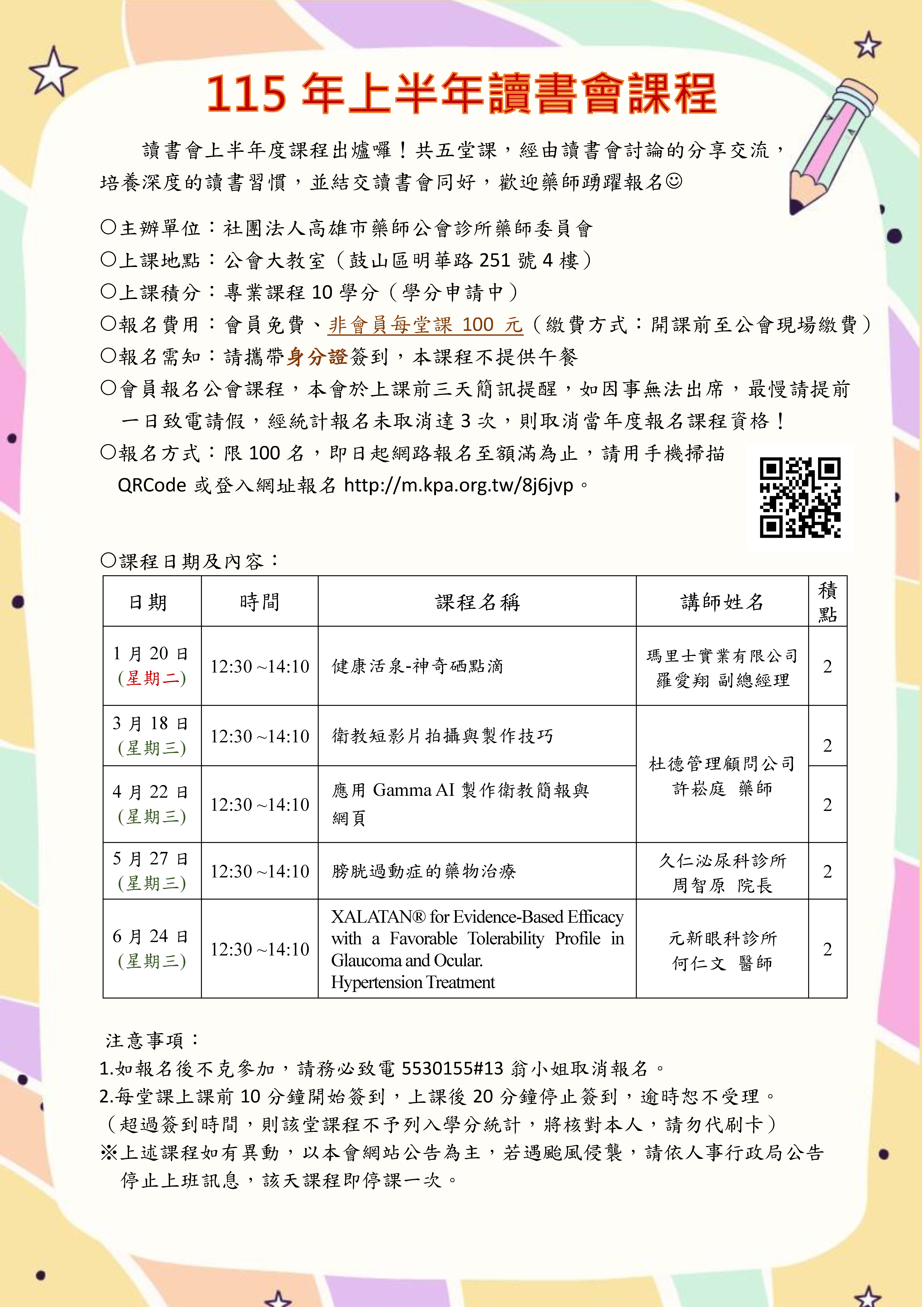115年診所上半年度讀書會課程